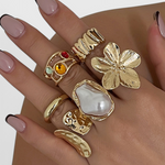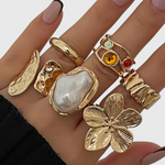Une fusion de design fluide et de délicates décorations, cette bague ouverte capture la beauté de la nature en mouvement. Avec ses courbes en métal fondu, ses accents de strass et une douce perle simulée, elle ajoute une qualité artistique et onirique à votre style quotidien.