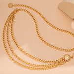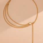 Impressionnante et sophistiquée, la Chaîne de Taille en Couches est conçue pour accentuer la taille avec un glamour sans effort. Avec plusieurs chaînes délicates, elle se drape merveilleusement sur des robes ou des styles taille haute, ajoutant définition et éclat à n'importe quel look spécial.