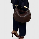 Le sac Gerda Woven est une célébration de l'artisanat, de la structure et de l'élégance. Fabriqué en cuir vegan de haute qualité, son design tissé complexe reflète l'attention portée aux détails et l'esthétique intemporelle de la marque. La poignée supérieure en acier inoxydable de couleur dorée, avec un design sculptural, ajoute une touche moderne, faisant de Gerda un accessoire qui se sent à la fois classique et artistique.