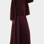 Une proposition accueillante qui allie confort et sophistication moderne. Gia se distingue par une silhouette de pull oversize qui apporte une désinvolture chic et une jupe midi coordonnée qui équilibre avec une féminité raffinée. Le contraste entre volume et structure fait de cet ensemble un choix polyvalent.