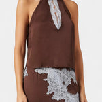 Ensemble Top et Jupe Elvira avec Panneaux en Dentelle Contrastée