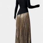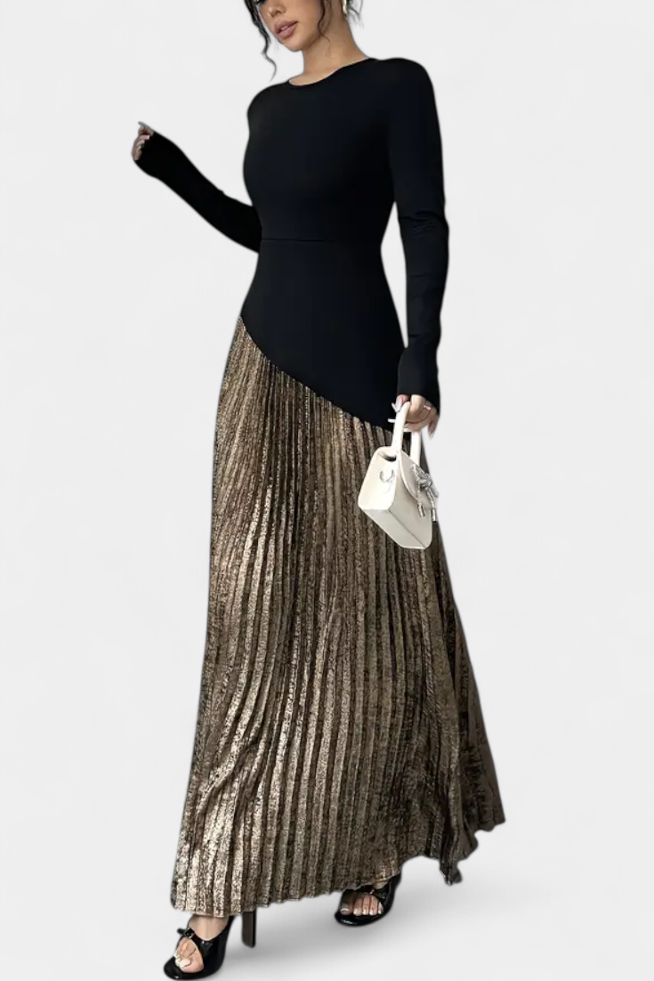 Une silhouette raffinée qui allie modernité et équilibre. Leya se distingue par un design de blocs de couleur contrastés qui rehaussent son attrait visuel, tandis que la coupe en A ajoute fluidité et mouvement naturel. Son décolleté rond et ses manches longues équilibrent l'ensemble du look, créant une pièce polyvalente et sophistiquée pour la saison.