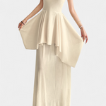 Une silhouette sensuelle qui combine fraîcheur et féminité contemporaine. Hollis se distingue par un décolleté en V français et un col halter qui allonge subtilement la silhouette. Le dos nu ajoute une touche audacieuse, tandis que la taille avec des détails en maille et le design ajusté définissent délicatement la forme.