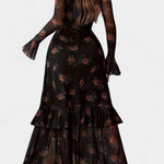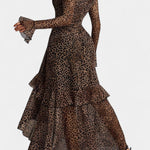 Une proposition sophistiquée qui combine force et féminité. Amali éblouit avec un imprimé léopard dans des tons bruns et beiges chauds qui ajoutent du caractère, tandis que son décolleté carré met élégamment en valeur la silhouette. La silhouette fluide en A tombe avec grâce jusqu'au sol, accompagnée de subtils volants qui ajoutent un mouvement naturel.