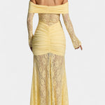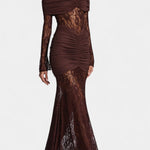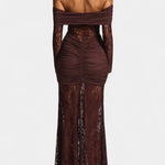 Un design élégant et féminin qui capture l'essence de la sophistication intemporelle. Brume éblouit avec des détails en dentelle intriqués et des volants qui définissent la silhouette avec grâce. Son décolleté sans bretelles ajoute une touche raffinée et séduisante, tandis que la longueur maxi crée une silhouette allongée et flatteuse.
