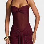 - Décolleté halter avec buste torsadé qui met audacieusement en valeur la féminité