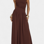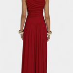 Minimaliste mais percutante, la robe Maddy combine un design sans manches avec un délicat drapé latéral qui met subtilement en valeur la silhouette. Sa coupe longue et fluide ajoute de l'élégance à chaque mouvement, tandis que le décolleté droit apporte une touche contemporaine et sophistiquée. Une pièce polyvalente qui s'adapte facilement des événements formels aux dîners au crépuscule.