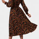 Robe Nerin A-Line avec Imprimé Léopard et Taille Ajustable