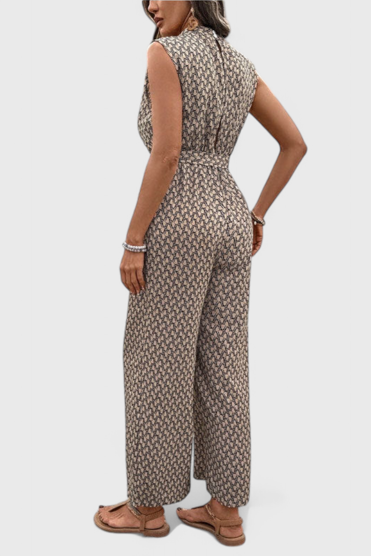 Confiant et sans effort, Carmela ajoute une touche audacieuse à la garde-robe d'été. Avec une impression géométrique impressionnante, ce mono sans manches est fait d'un mélange de coton respirant qui se déplace avec vous. La taille à nœud flatteuse et la silhouette à jambes larges créent un look décontracté mais raffiné, parfait pour des promenades ensoleillées, des brunchs élégants ou des réunions informelles l'après-midi.