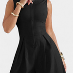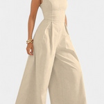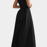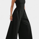Minimalisme élégant pour se démarquer avec simplicité et structure. Le mono Blanche présente une silhouette épurée avec un col rond, un design sans manches et des jambes larges, rehaussé par des plis qui ajoutent fluidité et sophistication. Sa fermeture arrière cachée complète un look moderne et polyvalent.