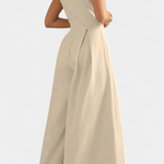 Mono sans manches à jambes larges Blanche avec plis et col rond