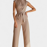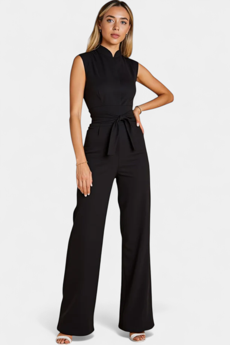 Une sophistication puissante pour toute occasion. Ce mono redéfinit le style avec une silhouette épurée et structurée qui accentue élégamment la silhouette. La jambe évasée et le col haut créent une présence imposante, tandis que les détails fonctionnels le rendent aussi pratique que raffiné.