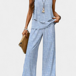 Ensemble Boho Élégant Martina avec Top Sans Manches et Pantalons Droits Imprimés