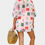 Frais, joyeux et parfait pour les journées ensoleillées. L'ensemble Mariluz combine une chemise à manches courtes avec col et boutons sur le devant, ainsi qu'un short taille haute avec une bande élastique et un cordon ajustable. Avec un imprimé vibrant et une silhouette décontractée, ce look d'été vous accompagne avec légèreté et style.