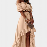 - Le décolleté off-shoulder ajoute une touche coquette et féminine