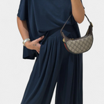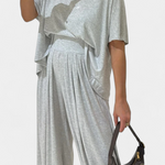Décontracté, minimaliste et confortable, l'ensemble Trista associe un top à coupe droite à des pantalons à jambes larges dans une teinte gris clair polyvalente. Son tissu en mélange de modal offre une douceur exceptionnelle, permettant un drapé fluide qui met en valeur sans effort. Parfait pour des journées décontractées ou pour un style urbain raffiné sans complications.