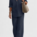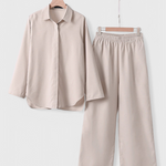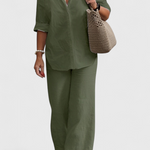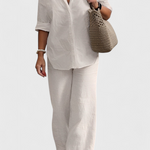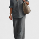 Simplicité raffinée avec une silhouette qui respire la fraîcheur et la naturalité. L'ensemble Skye fusionne une chemise à boutons ample avec un pantalon à taille élastique, tous deux fabriqués dans un mélange léger de coton et de lin. Une combinaison polyvalente qui équilibre confort, style et fonctionnalité pour votre vie quotidienne.