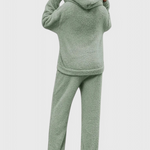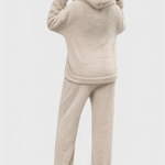 Billie élève la chaleur et la douceur à un tout autre niveau. Conçu pour les journées d'hiver confortables, cet ensemble en deux pièces en teddy comprend un sweat à capuche à coupe décontractée avec une grande poche kangourou et un pantalon en peluche assorti. Que vous soyez en train de vous détendre à la maison ou de rester au chaud lors des froides matinées, Mia vous enveloppe de confort sans compromettre le style.