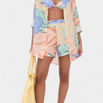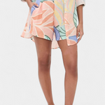 Inspiration côtière avec une touche de fraîcheur vibrante. L'ensemble Lumina combine une chemise ample de style boyfriend avec des shorts taille haute, le tout confectionné dans un tissu respirant avec un imprimé tropical. Sa silhouette fluide et son ambiance décontractée en font le choix parfait pour les journées ensoleillées et les moments de détente avec style.