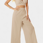 Un design créé pour se démarquer avec une élégance décontractée. L'ensemble Valentina combine un top court en dentelle avec un dos ouvert et des pantalons à jambes amples taille haute, créant une silhouette fluide et sophistiquée. Le décolleté en V et les détails féminins ajoutent une touche romantique, tandis que le tissu léger assure fraîcheur pendant les journées les plus chaudes.