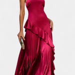 Un design moderne qui combine féminité et style avant-gardiste. Paige éblouit avec son décolleté à une épaule et sa silhouette fluide, tandis que les délicats volants à l'ourlet ajoutent de la texture et du mouvement. Fabriquée en tissu léger, c'est le choix idéal pour les occasions où vous souhaitez vous démarquer avec sophistication et grâce.