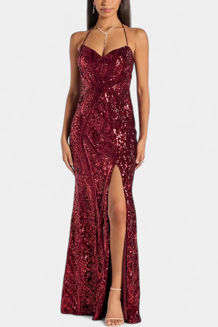 Une silhouette éblouissante qui irradie magnétisme et sophistication. La Marleni présente un design halter qui met en valeur la silhouette et une finition brillante de paillettes qui capture chaque éclat de lumière. Sa coupe flatteuse en fait la pièce parfaite pour être au centre de l'attention.