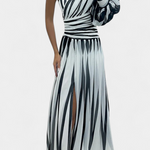 Robe Maxi Élégante Bethania à Une Épaule et Rayures