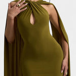 - Col halter torsadé qui ajoute une touche chic et flatteuse