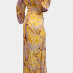 Robe Maxi Plissée Quintessa avec Manches Longues et Imprimé Vibrant