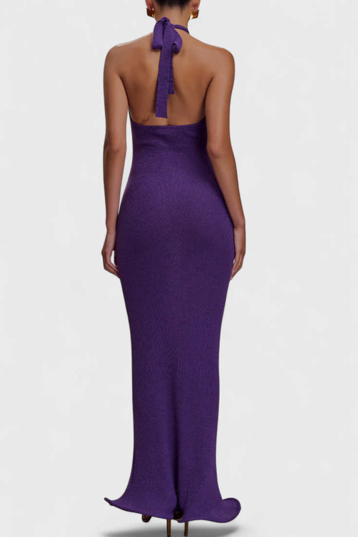 Robe Longue Tricot Trinity avec Col Halter et Dos Nu