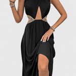 - Le décolleté halter crée une silhouette fraîche et élégante