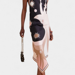 Art en mouvement avec une touche estivale et sophistiquée. La robe Rosenda se distingue par son imprimé abstrait et une silhouette midi fluide qui allie fraîcheur et style. Son dos ouvert et l'ourlet asymétrique ajoutent une touche moderne et sensuelle sans effort.