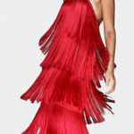 Festive, dynamique et conçue pour briller, la robe Saidey est une pure énergie en mouvement. Avec sa silhouette fluide ornée de franges en cascade et un décolleté halter qui met en valeur les épaules, ce design assure un effet impressionnant à chaque tour. Le dos nu ajoute la touche sensuelle parfaite, créant un look qui équilibre le glamour rétro avec la modernité.