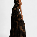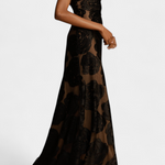 Un glamour raffiné avec une touche moderne. La robe Vlada combine un décolleté asymétrique sculpté avec un luxueux velours floral de grande échelle, créant une silhouette flatteuse pleine de caractère. Sa doublure douce et sa traîne fluide offrent confort et mouvement, garantissant que chaque pas soit inoubliable.