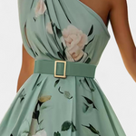 Romantique et raffiné, la robe Nila met en valeur votre silhouette avec un design à une épaule, des volants stratégiques et un doux imprimé floral en vert. Sa chute légère en chiffon et la fente latérale ajoutent du mouvement et de la fraîcheur, la rendant idéale pour les occasions où vous souhaitez vous sentir féminine, élégante et naturelle.