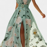 Robe Florale Nila avec Volants et Fente Latérale en Chiffon