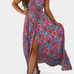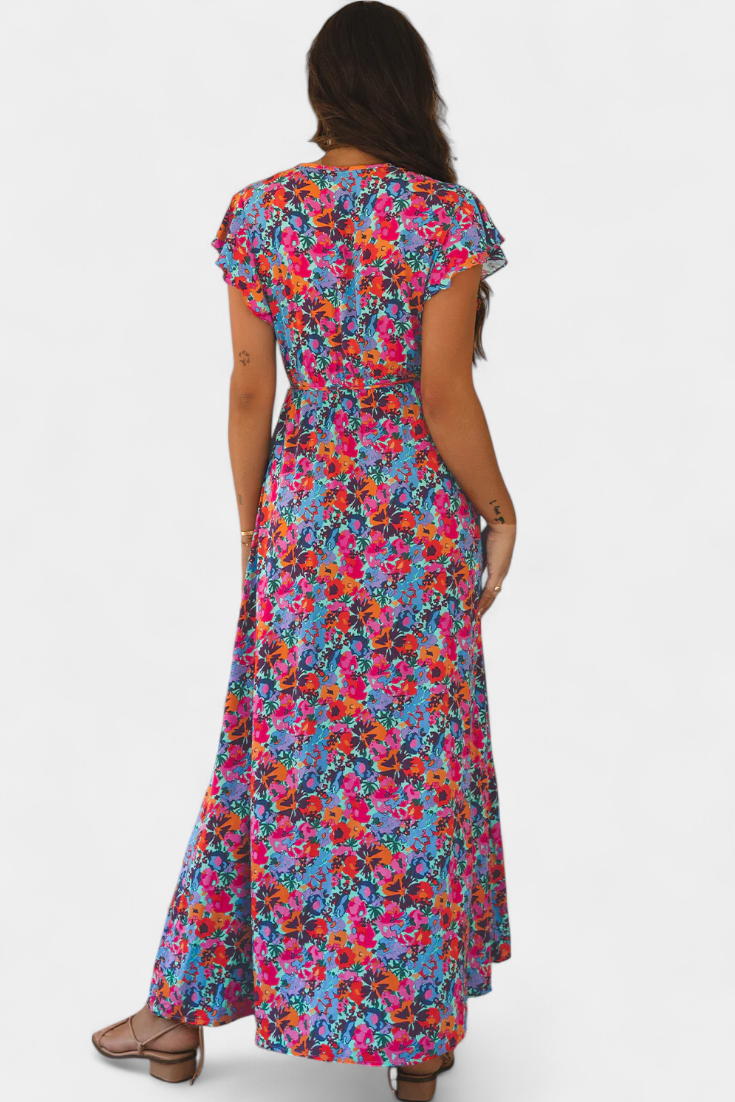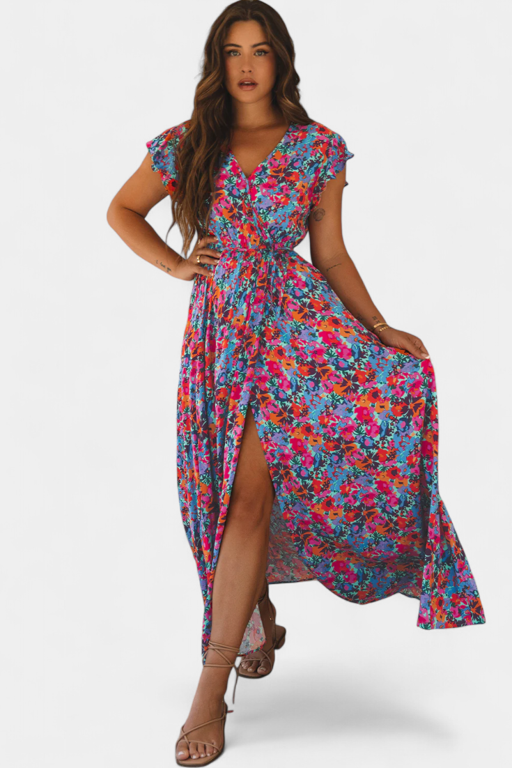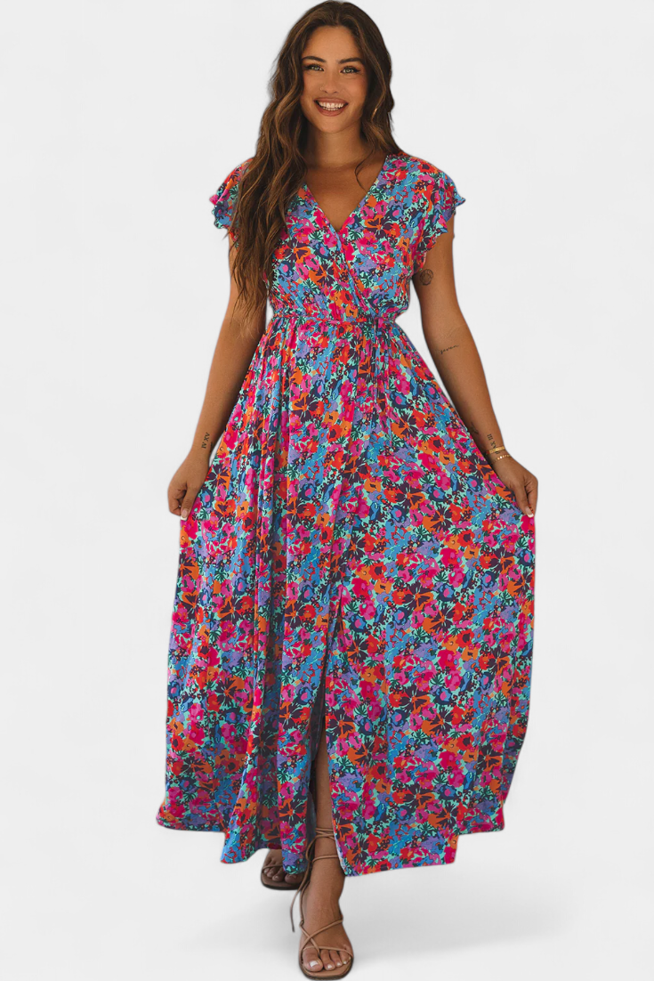 Robe Longue Ximena avec Imprimé Floral et Fente Latérale