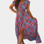Frais, enveloppant et vibrant. La robe Ximena allie une silhouette croisée à une jupe ample et une fente latérale pour créer une esthétique féminine avec liberté de mouvement. L'imprimé floral multicolore apporte énergie et vitalité, parfait pour se démarquer avec grâce lors de journées ensoleillées ou d'occasions spéciales sans effort.
