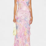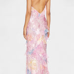 Féminine et fluide, la Robe Cerf transforme chaque pas en une douce élégance. Avec des volants en cascade, un imprimé floral et une silhouette flatteuse en biais, c'est un choix gracieux pour des fêtes dans le jardin, des célébrations nocturnes ou des mariages d'été.