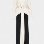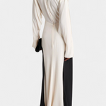 Sophistiquée et enveloppante, la robe Slyune allie un design aux lignes épurées avec un contraste de couleur qui ajoute de la force visuelle. Son profond décolleté en V allonge la partie supérieure du corps, tandis que les manches longues et la silhouette fluide créent un look à la fois élégant et confortable.