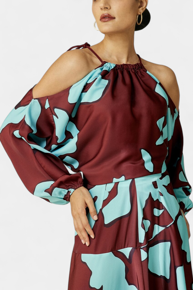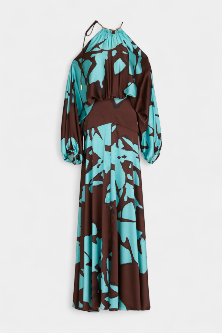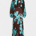 Élégance éthérée avec une touche contemporaine. La robe Monte se distingue par sa silhouette fluide, son design à manches ouvertes et un imprimé abstrait en tons contrastés qui capture la lumière à chaque mouvement. Son décolleté avec détail métallique et sa taille cintrée créent une silhouette stylisée avec caractère et sophistication.