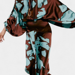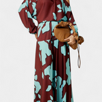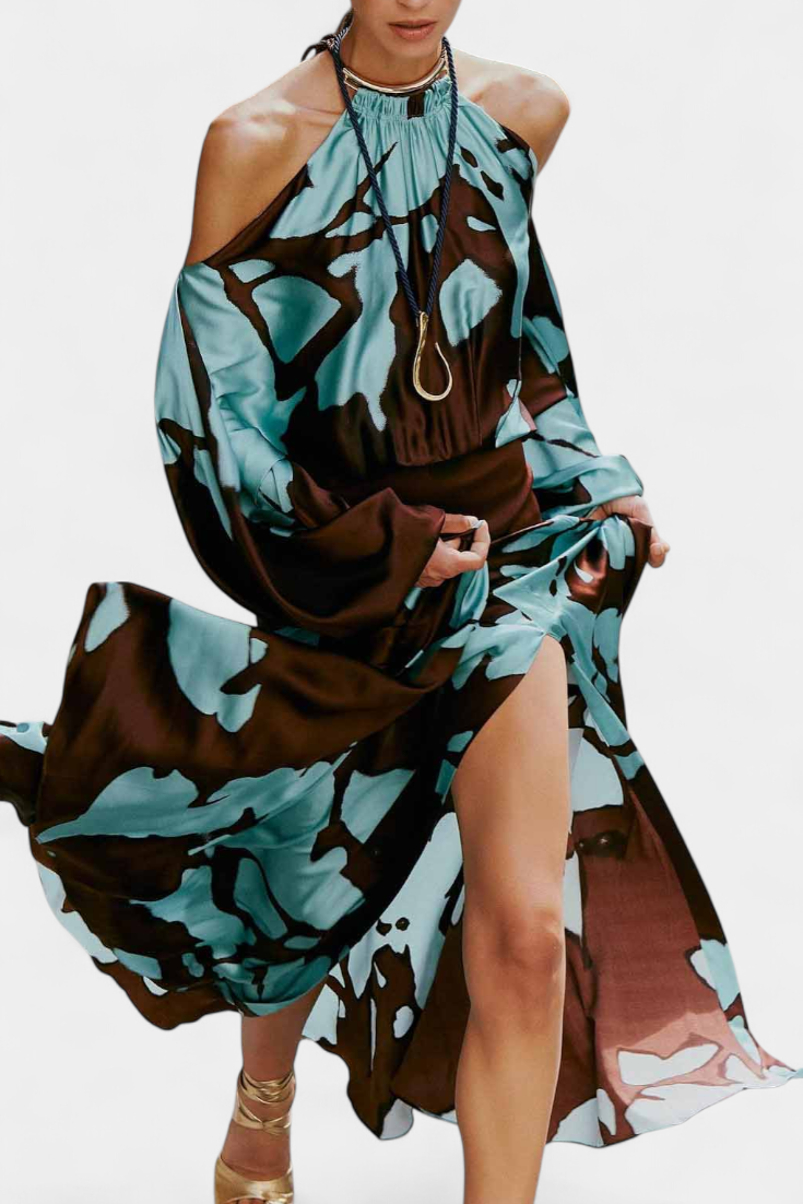 Robe Longue à Manches Ouvertes et Imprimé Abstrait