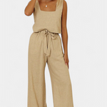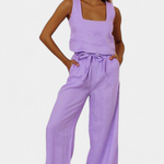 Ensemble en Lin Pascuala de Deux Pièces avec Top Sans Manches et Pantalons Fluides