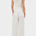 Design minimaliste avec une touche architecturale et sophistiquée. L'ensemble Hayden combine un haut structuré avec un décolleté enveloppant et des épaules tombantes avec des pantalons palazzo élégamment drapés. Le résultat : une silhouette moderne et fluide qui est résolument raffinée. Parfait pour se démarquer lors d'événements urbains, de cocktails ou de célébrations élégantes.