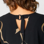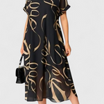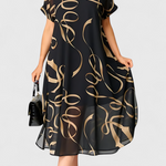 Robe Noire Allegra avec Imprimé Abstrait en Doré et Décolleté en V