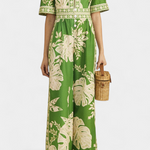 Vibrant et audacieux, le mono Elli capture l'énergie de l'été avec sa silhouette fraîche et décontractée. Le profond décolleté en V et l'imprimé de feuilles tropicales ajoutent une touche audacieuse et moderne, tandis que la coupe ample et les détails pratiques en font une pièce polyvalente pour tous vos plans estivaux.