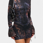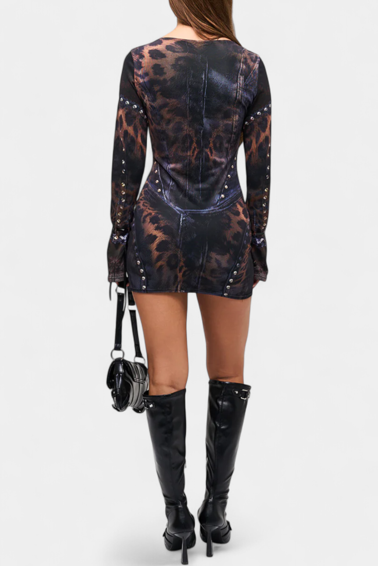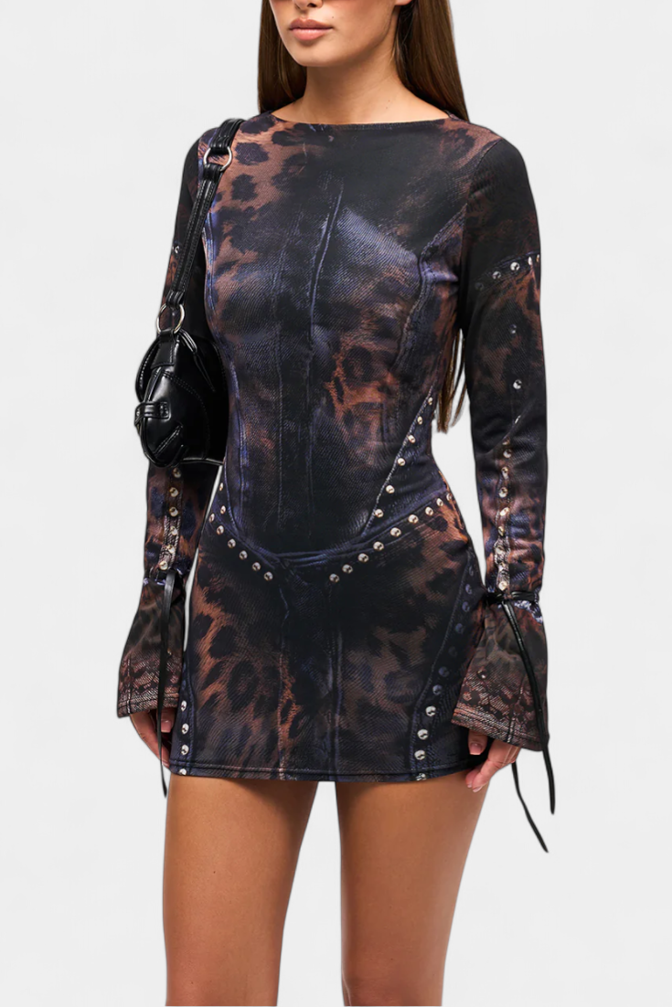 Robe Mini Tabea avec Manches Évasées et Imprimé Illusoire