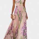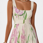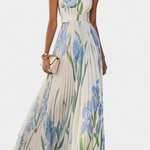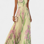 Robe Calanthe Longue Plissée avec Imprimé Floral et Décolleté Carré