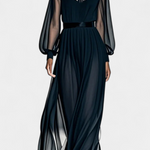 Robe Maxi en Chiffon Plissé Aurelia avec Détails Transparents