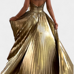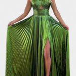 Robe Maxi Métallique Aikaterini avec Décolleté Croisé et Fente